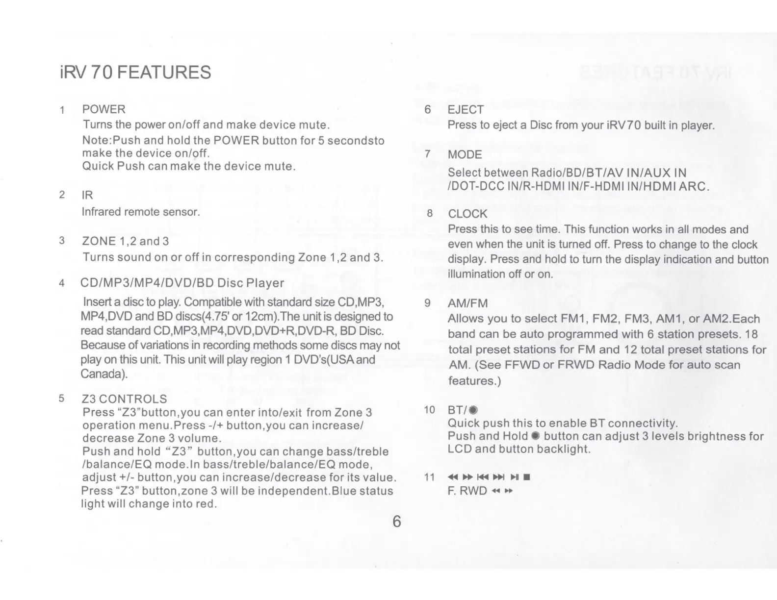 band can be auto programmed with 6 station presets. 18