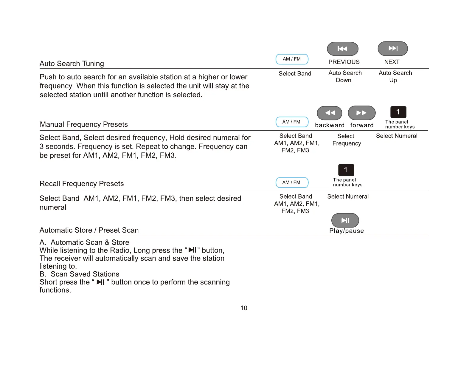 Select Band AM1, AM2, FM1, FM2, FM3, then select desired