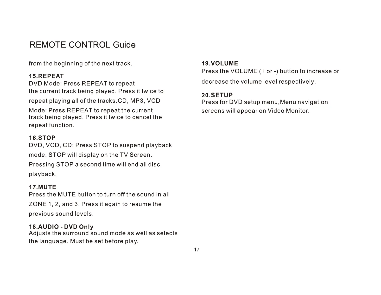 Mode: Press REPEAT to repeat the current