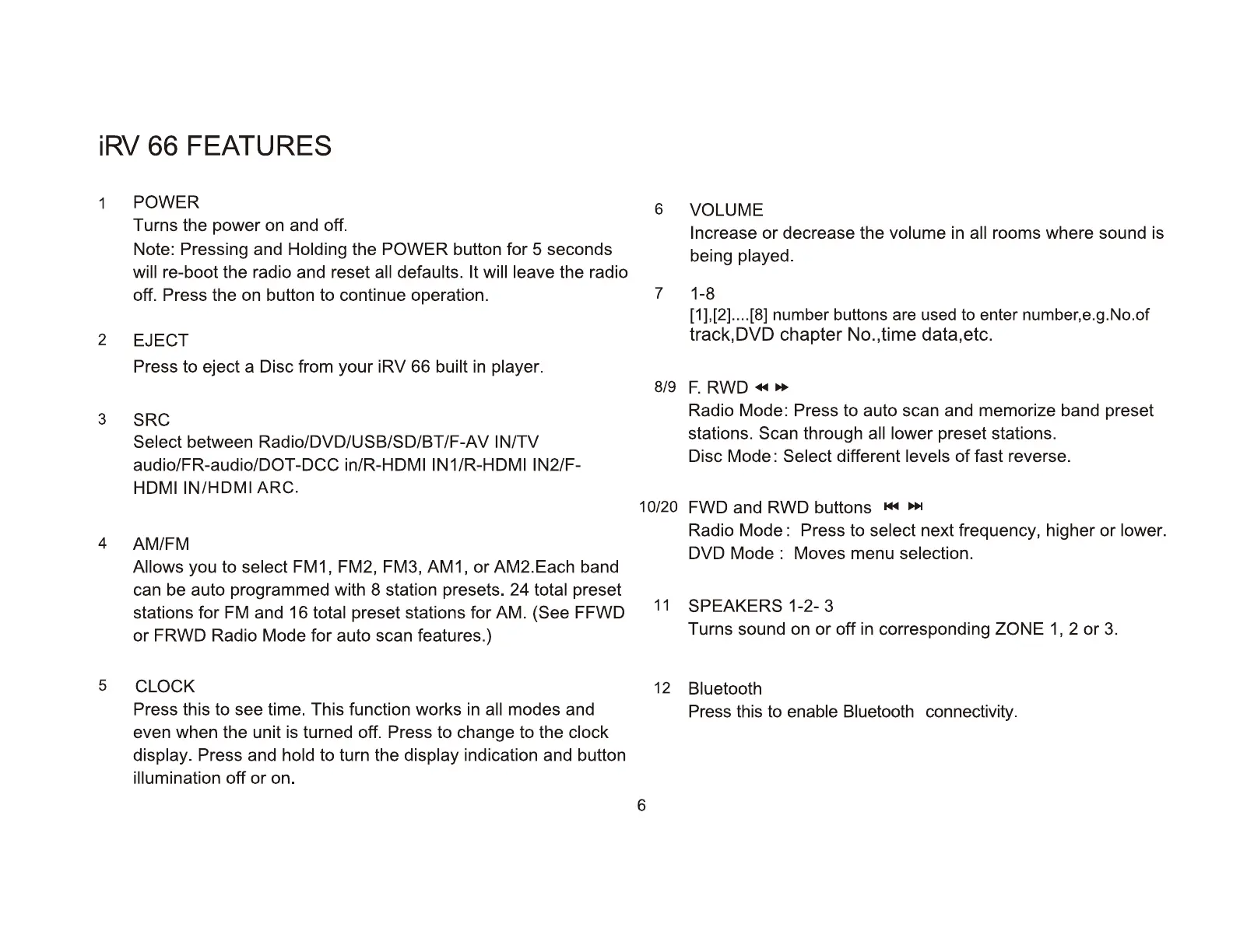 Radio/DVD/USB/SD/BT/F-AV IN/TV