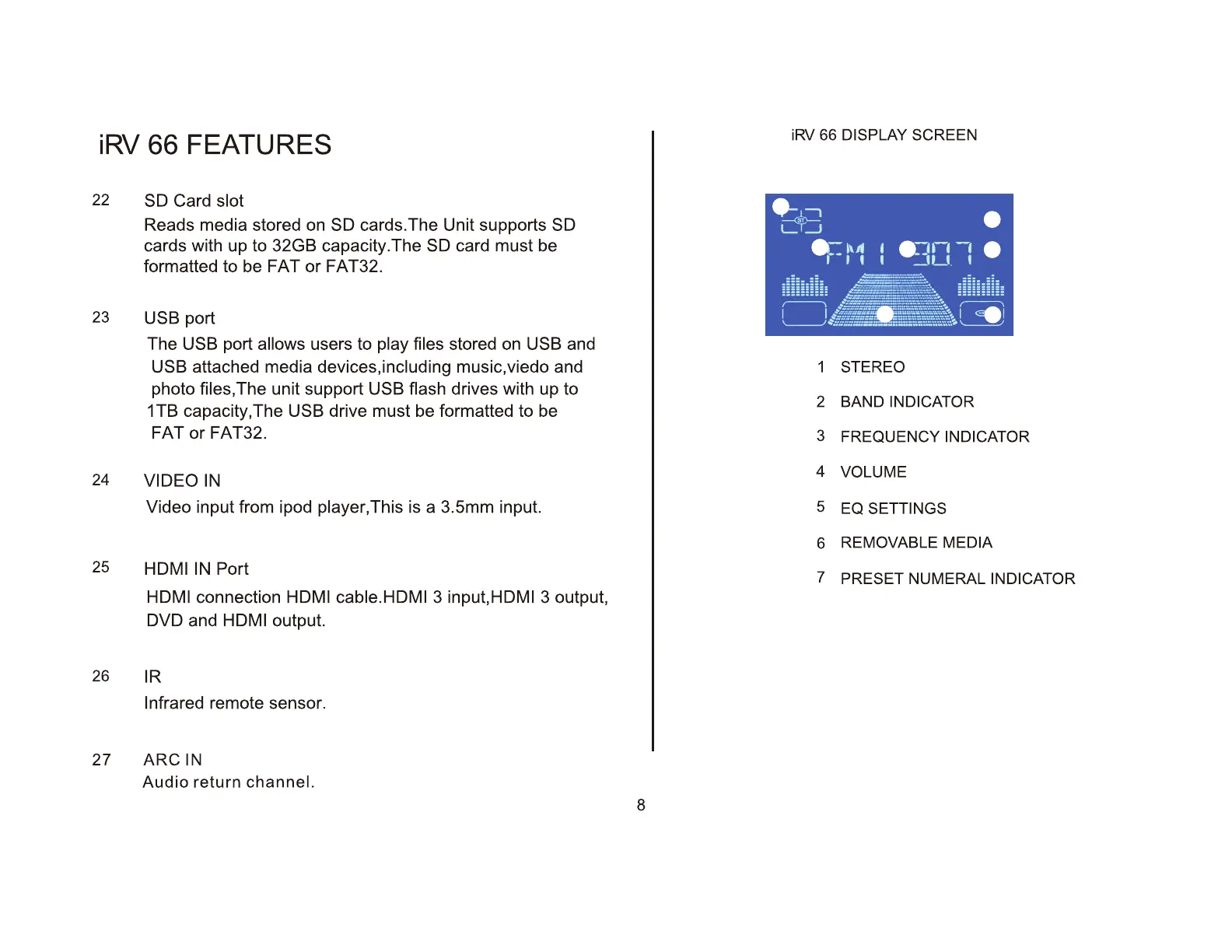 iRV Technologies iRV66 - Input;Output Ports; Bluetooth Functionality