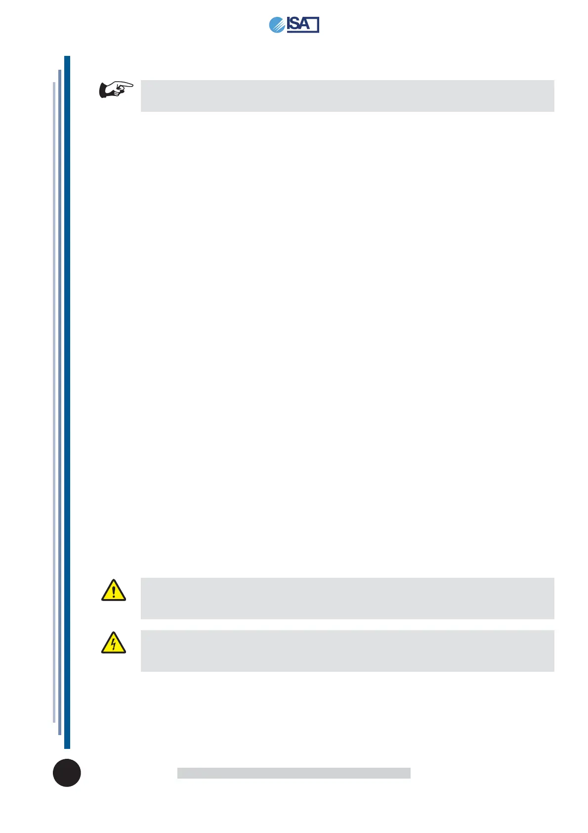 If lost or destroyed, you can request a copy of the manual from ISA S.r.l. by specifying the exact model,