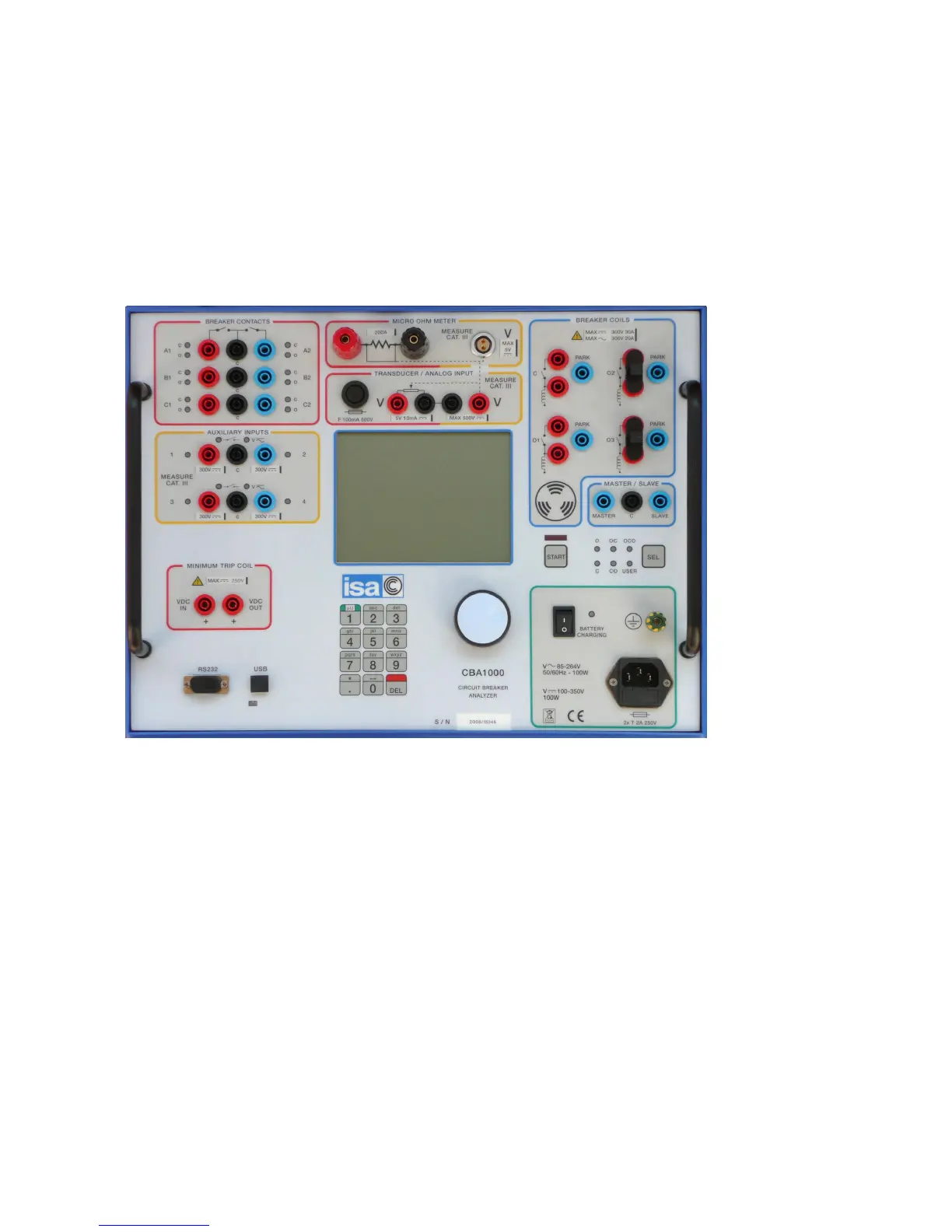 The following figure shows the CBA1000 front panel.
