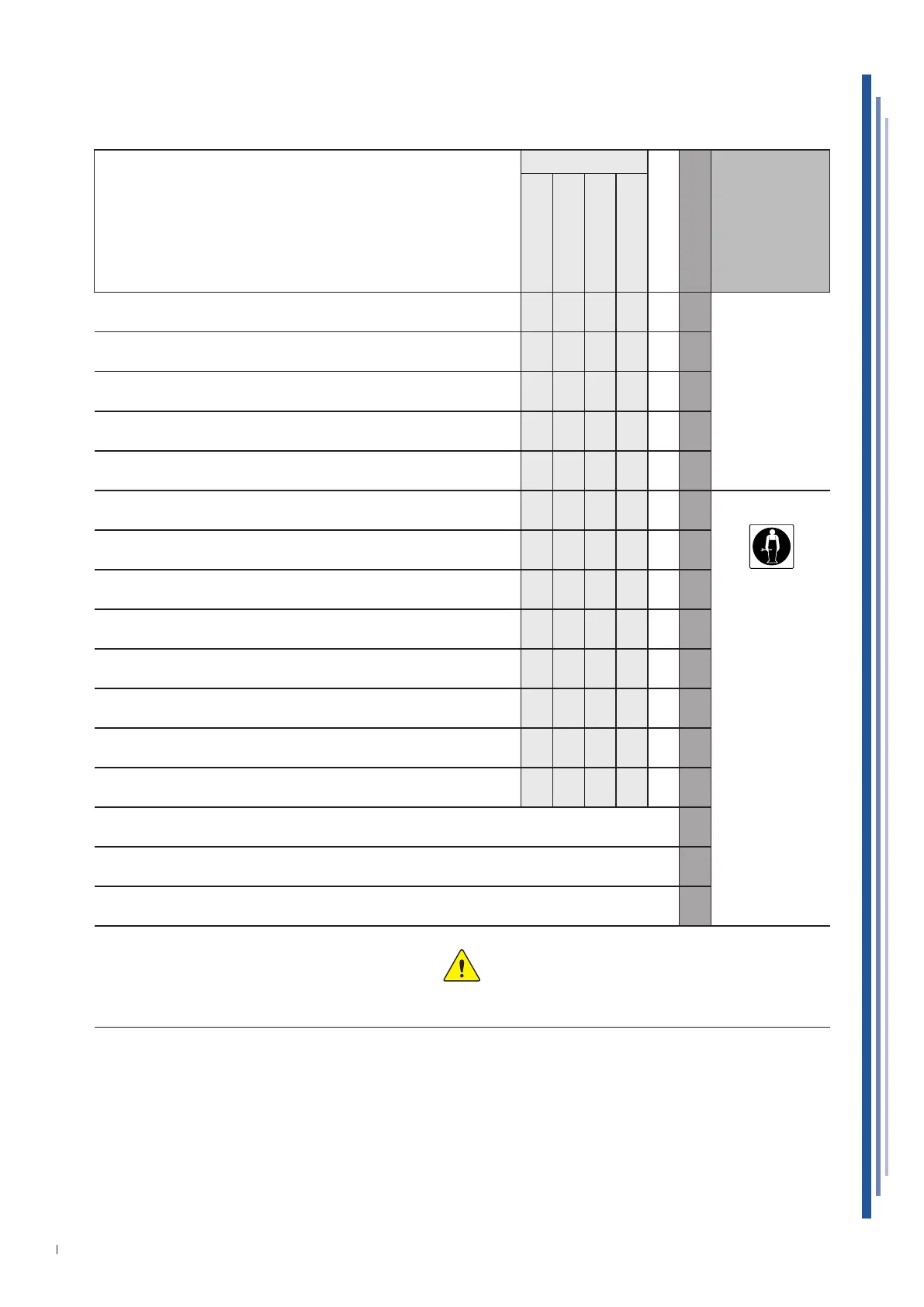 The Staff in charge of the appliance must control and respect the expiry dates for maintenance, given in the table