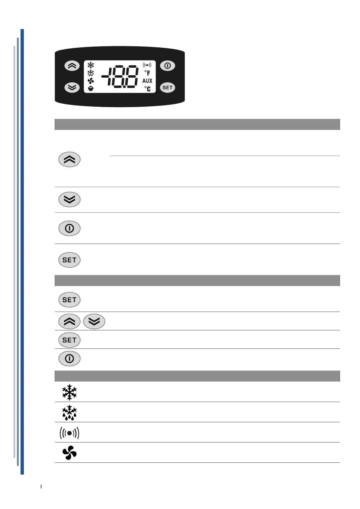 To manually activate the defrosting cycle, press and hold the UP key for 5 seconds.