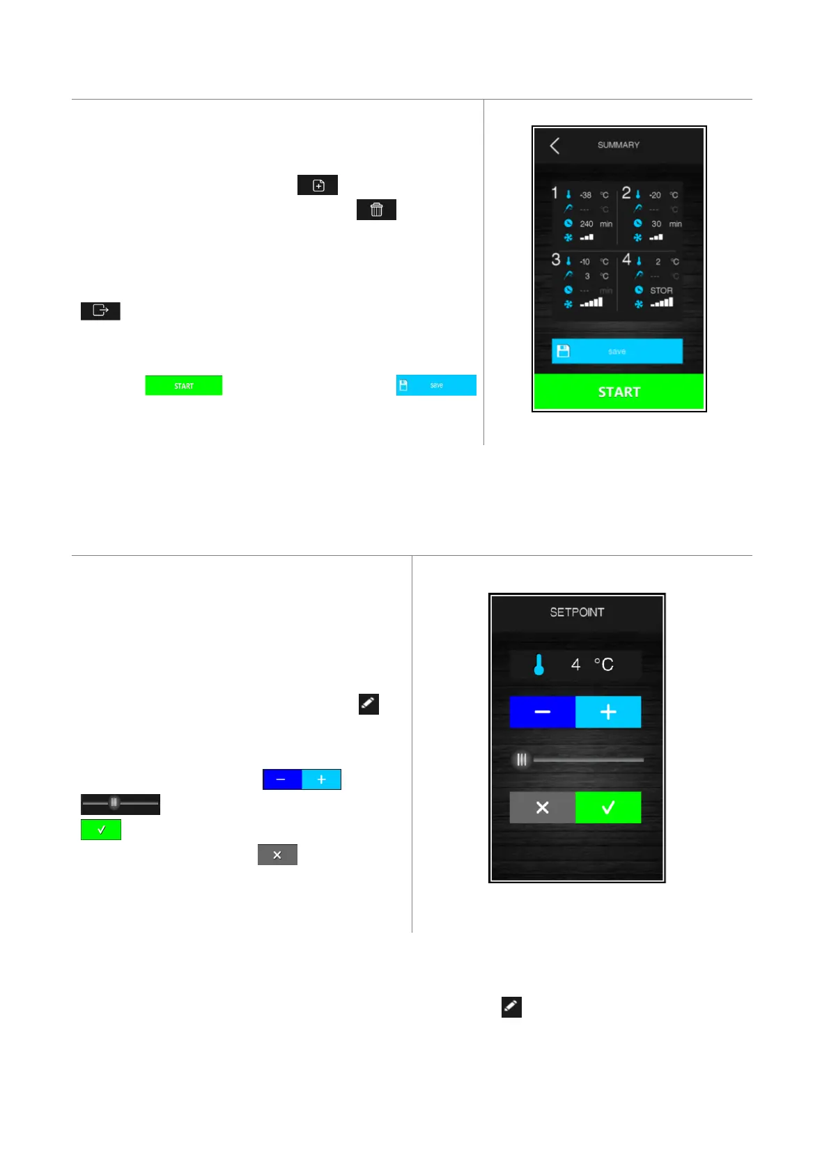 Proceed as described for the cabinet set point, after pressing area for the product temperature (or the