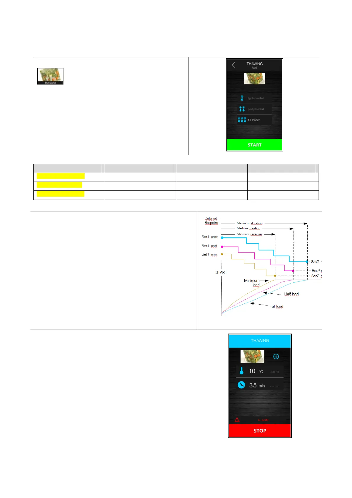 Load band Initial cabinet set point Final cabinet set point Cycle duration