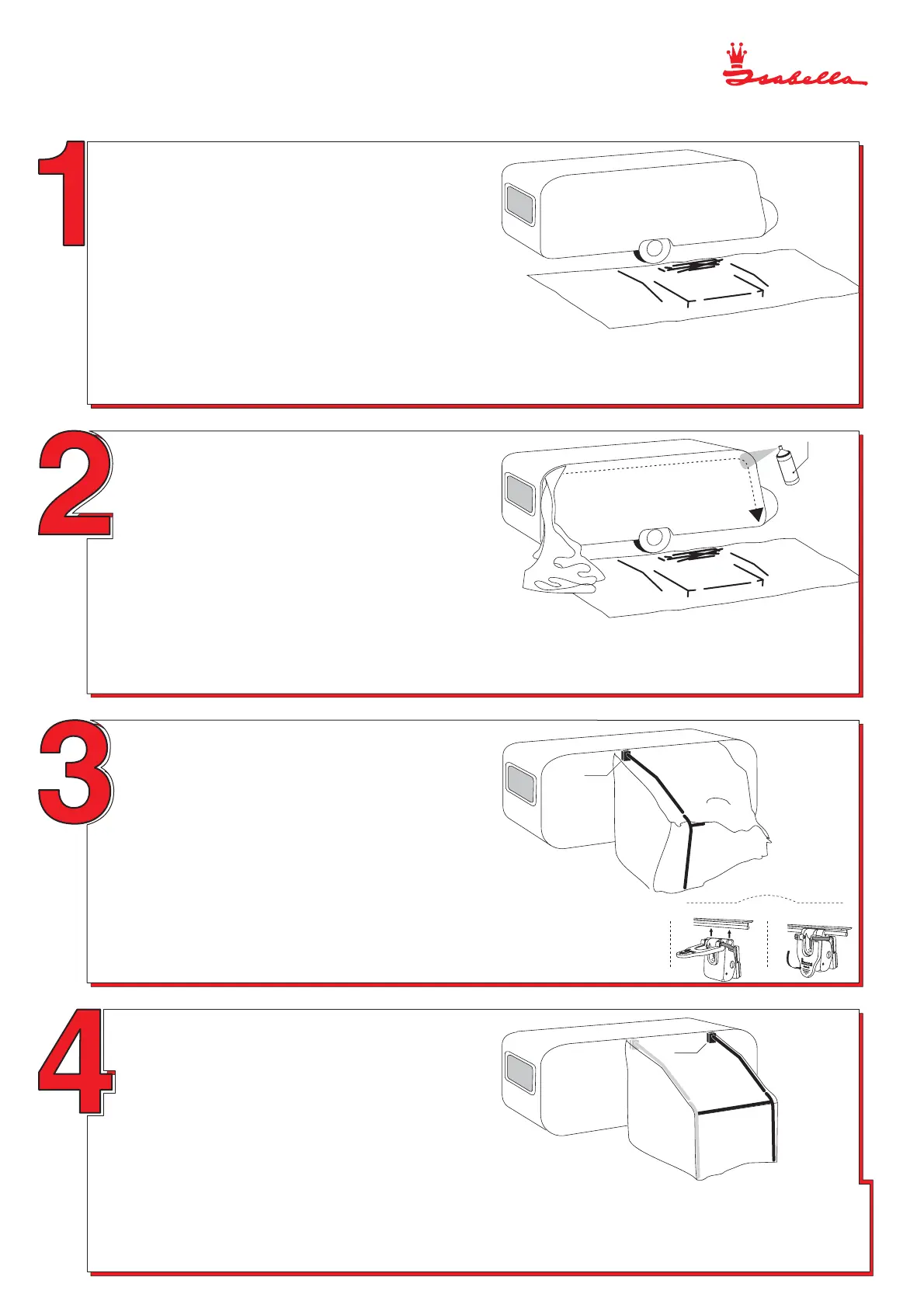 DK/NO: Træk teltdugen i vognskinnen. Sprøjt evt. skinnen med imprægnering (AquaTex), så teltet glider bedre.