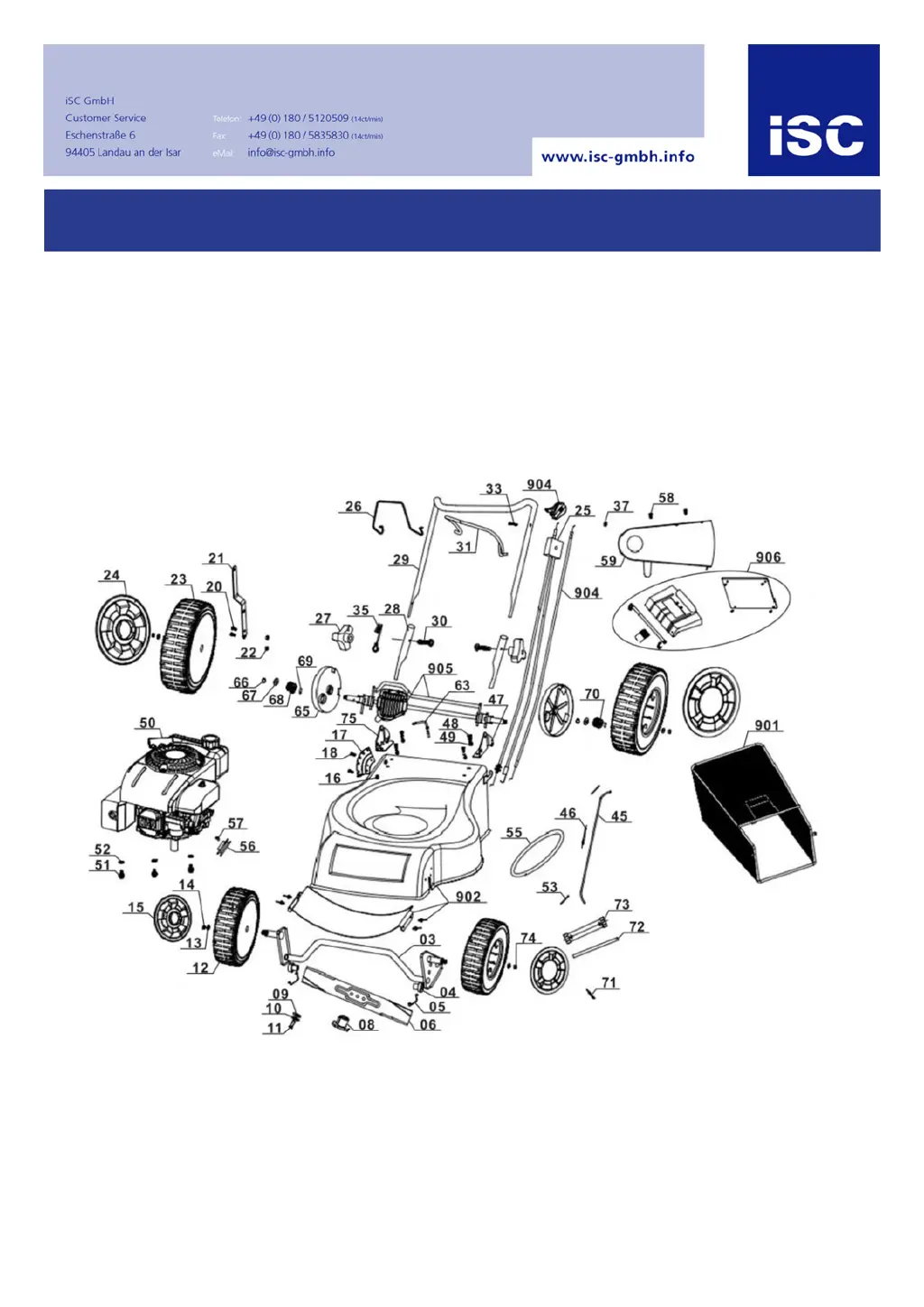If the ISC Lawn Mower's engine won't start, make sure the brake lever is pressed, the speed lever is in the correct position, and the petrol stop cock is open. Also, check if the fuel tank is empty and refill it if needed. Finally, inspect the spark plug and replace it if defective.