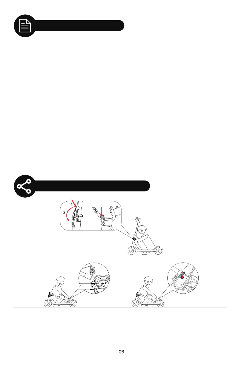 ● Check the scooter before every use. When you note loosen parts, low battery alerts, excessive