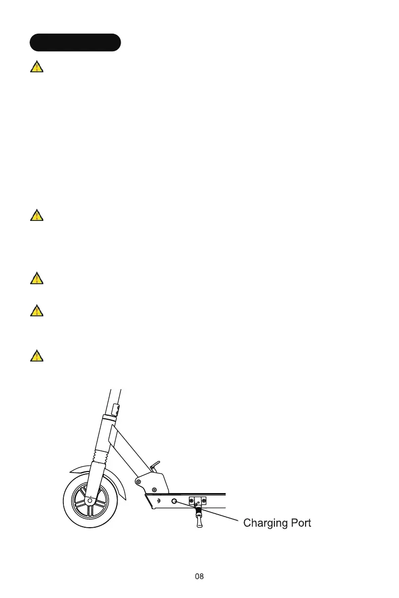 DO NOT, under any circumstances, use the scooter while it is connected to