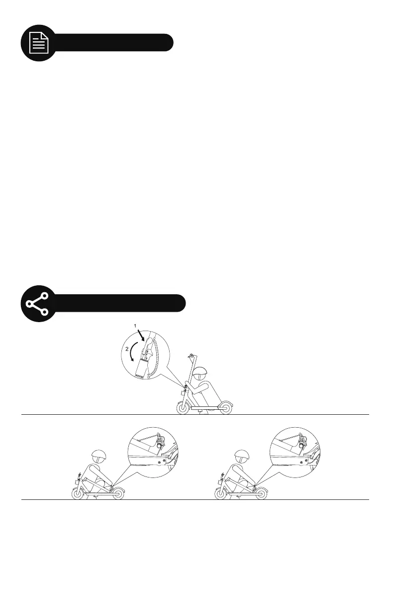 Assurez-vous que le scooter est éteint. Pour plier, déverrouillez le mécanisme de pliage, et pliez