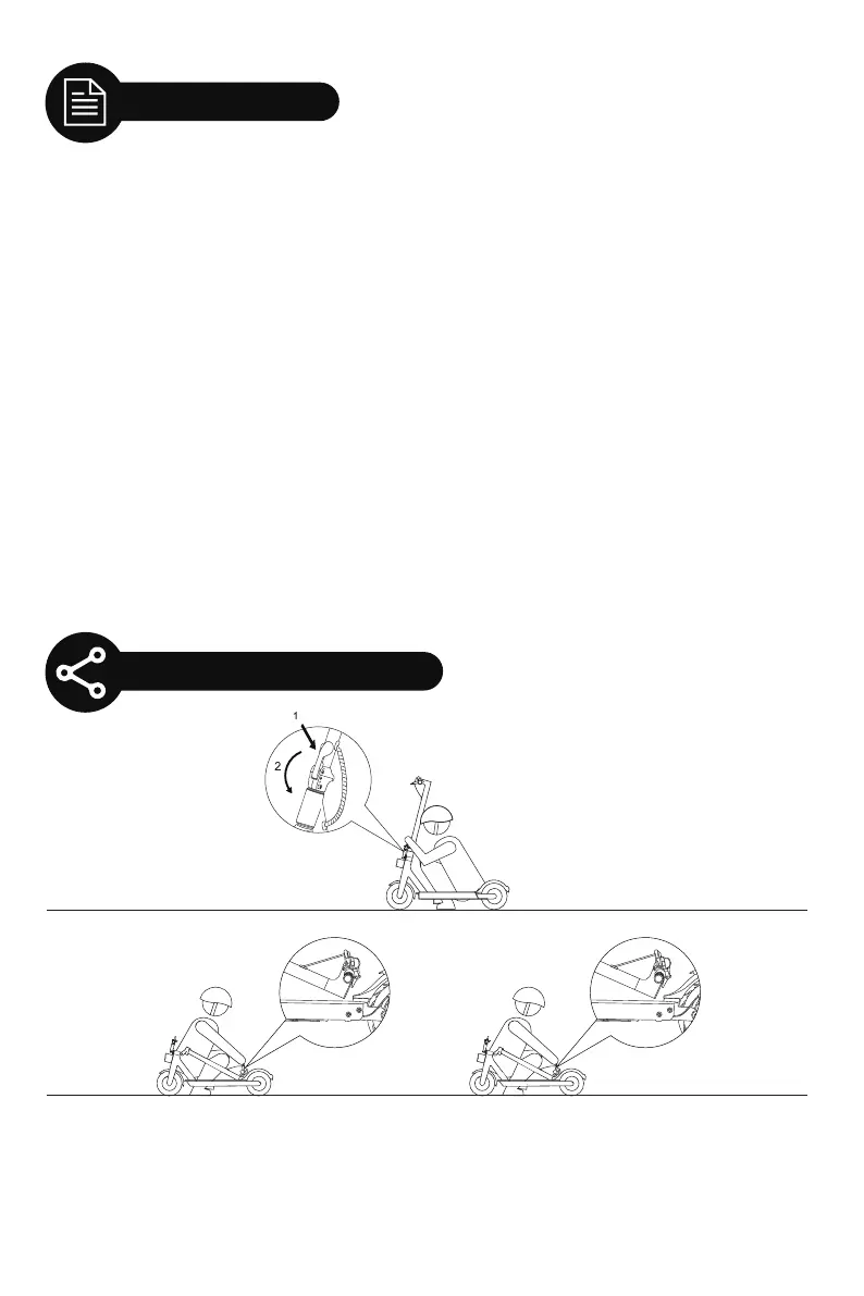 ● Überprüfen des Rollers vor jeder Fahrt. Schauen Sie nach losen Teilen, niedriger Batterie,