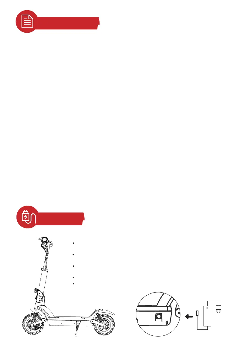 ● Check the scooter before every use. When you note loosen parts, low battery alerts, excessive