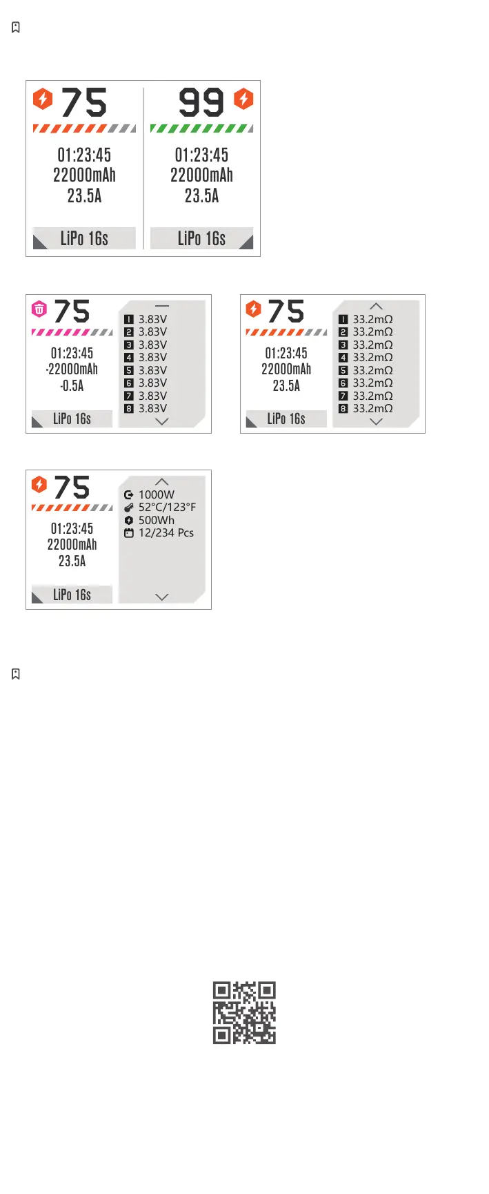 其中电芯电压及内阻仅在平衡充电模式下才会显示。