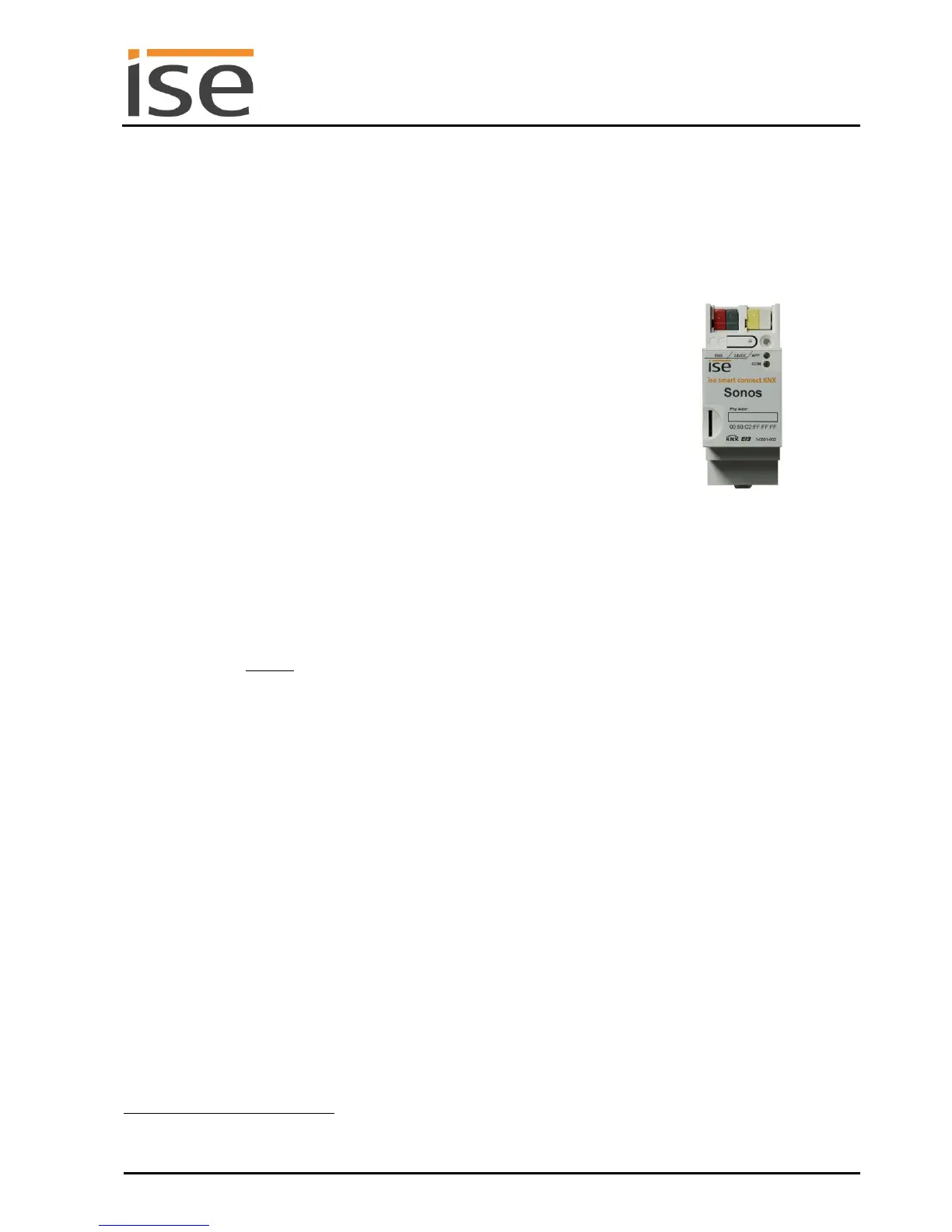 The ise smart connect KNX Sonos is configured using the ETS, version 4.2 resp. 5.0.2 and up. The