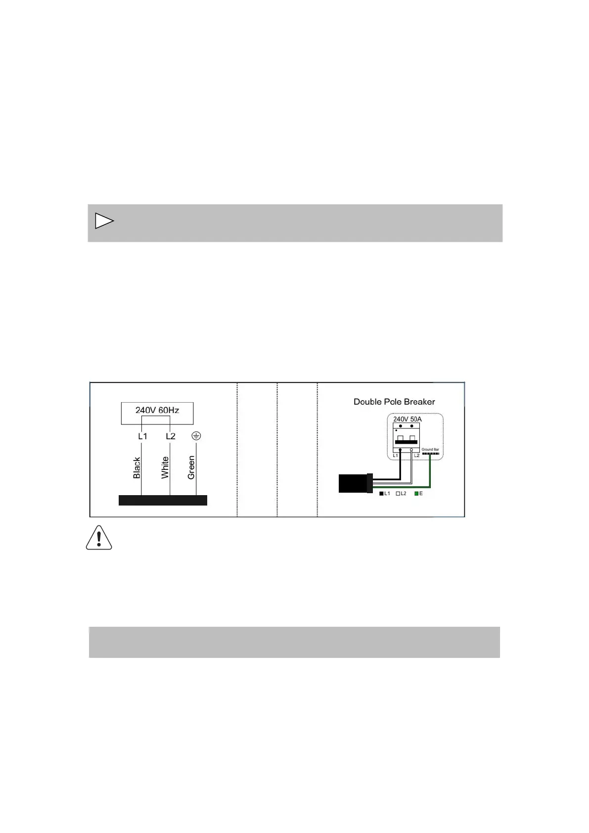 Black live wire L1, white live wire L2, green ground wire. The whole machine