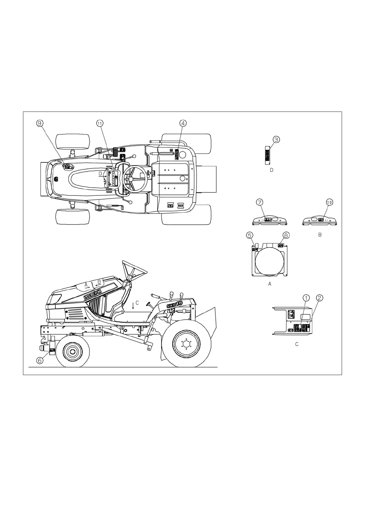 The following labels are stuck on the lawn mower and mower deck. You should of course read the caution