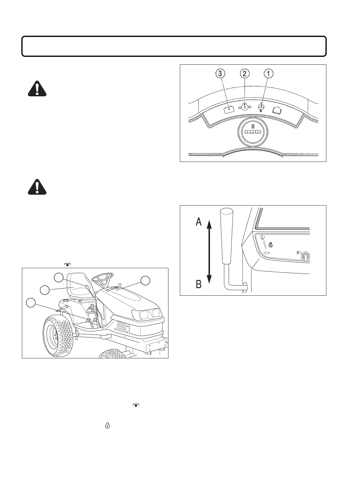 securely sit down in the operator's seat properly, de-