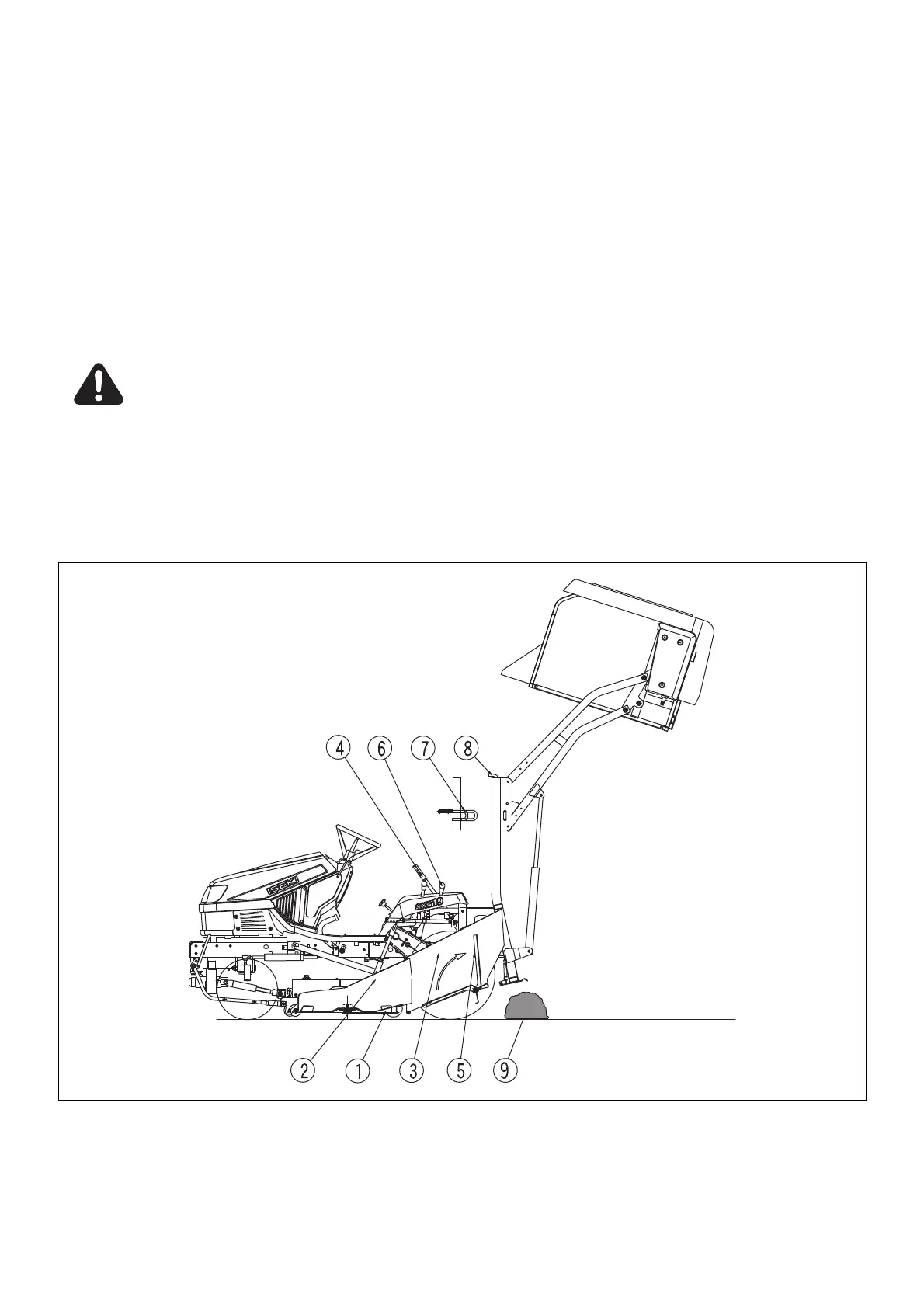 (1) Mower deck under plate (4) Cleaning lever (7) Rock pin