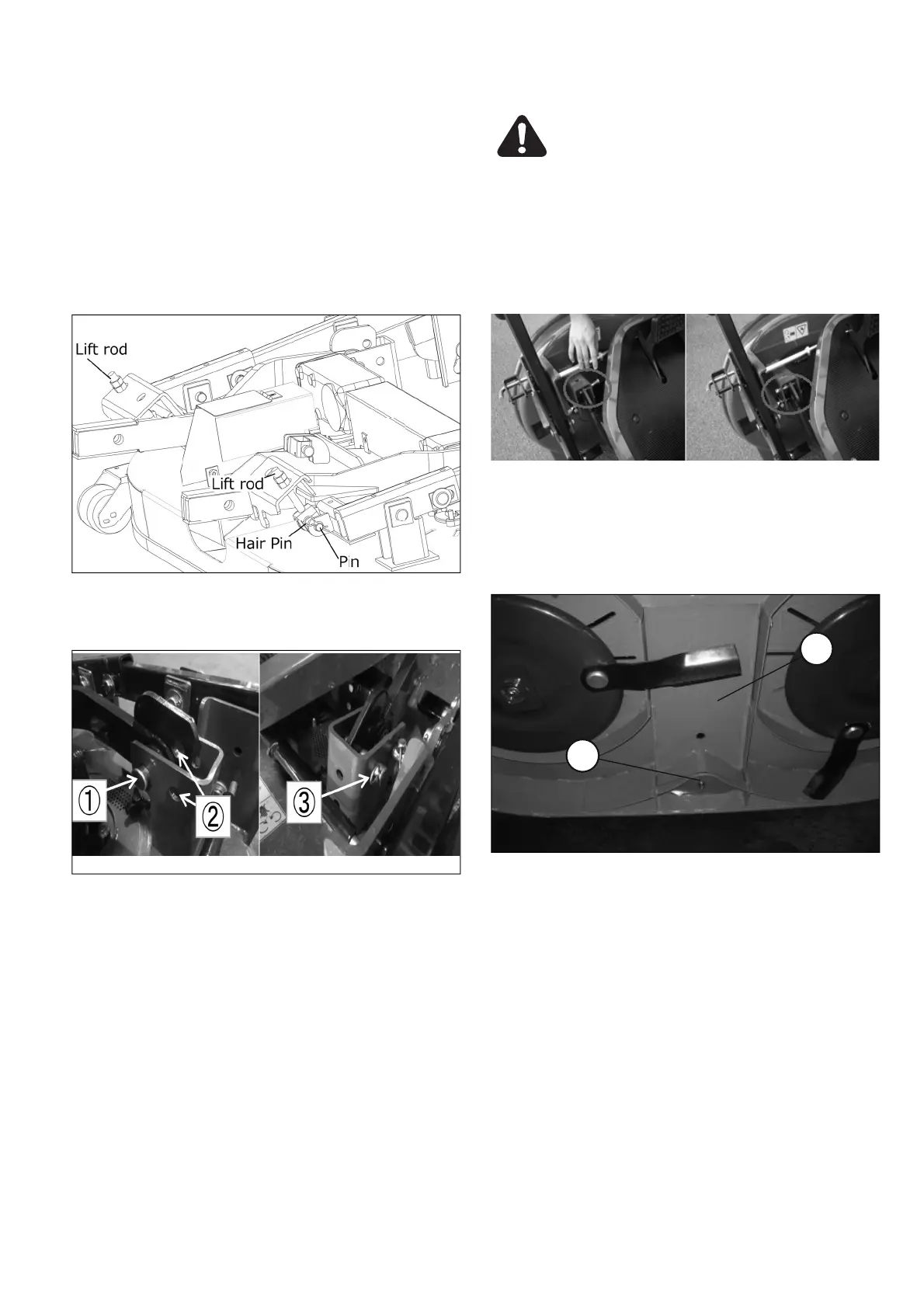 CAUTION : When swinging the mower deck,