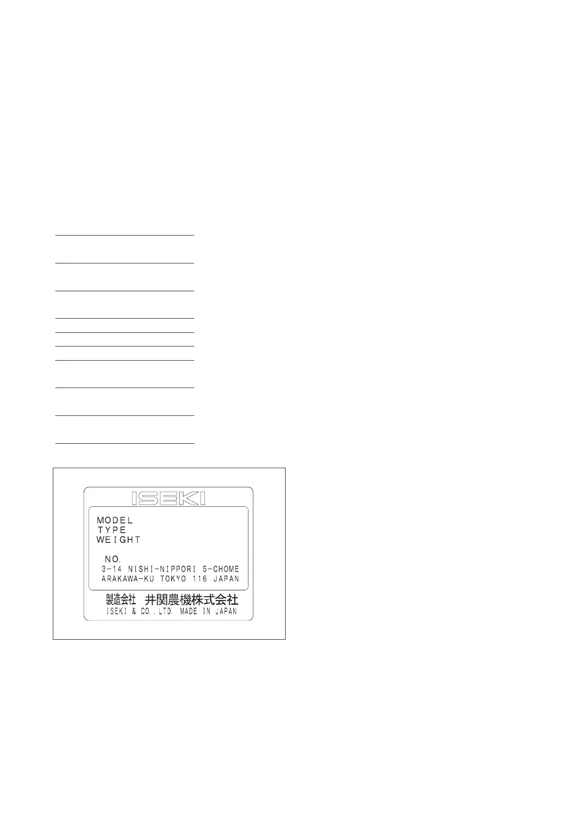 ISEKI Dealer, record these numbers in the
