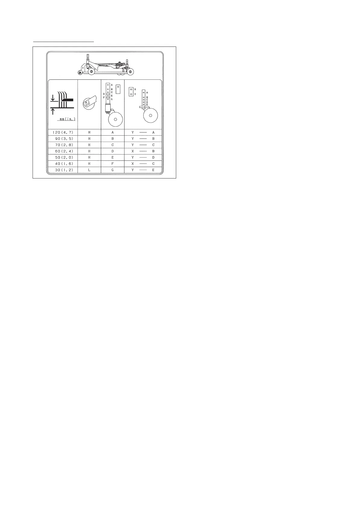 Lower the mower until the gauge wheels land