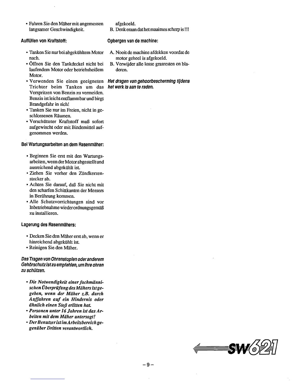 • Tanken Sie nur bei abgekiihltemMotor