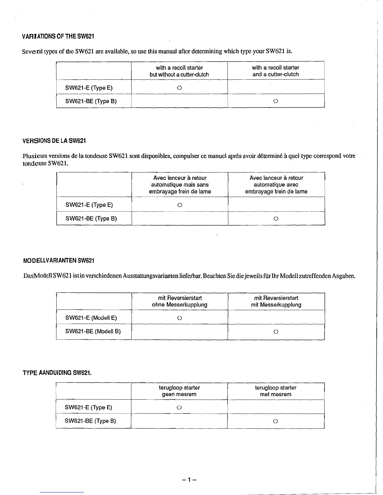 tondeuse SW621 sont disponibles, compulser ce manue