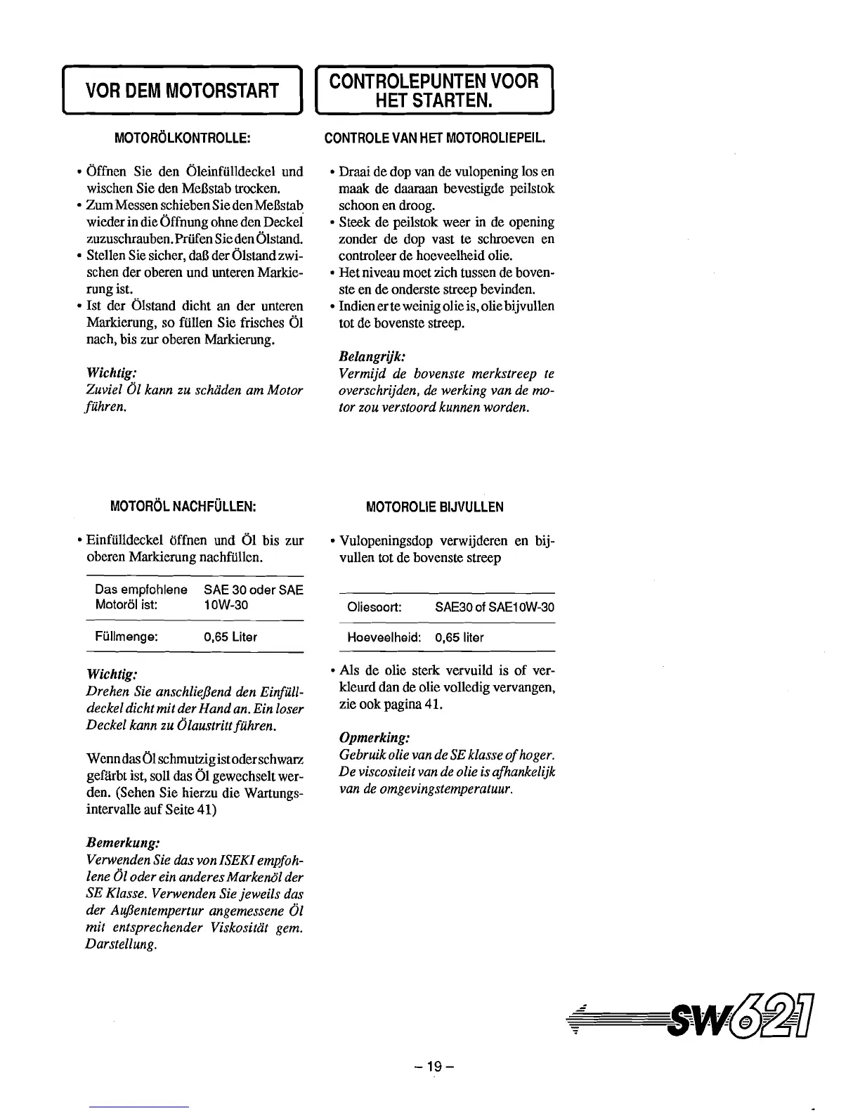 Das empfohlene SAE 30 oder SAE