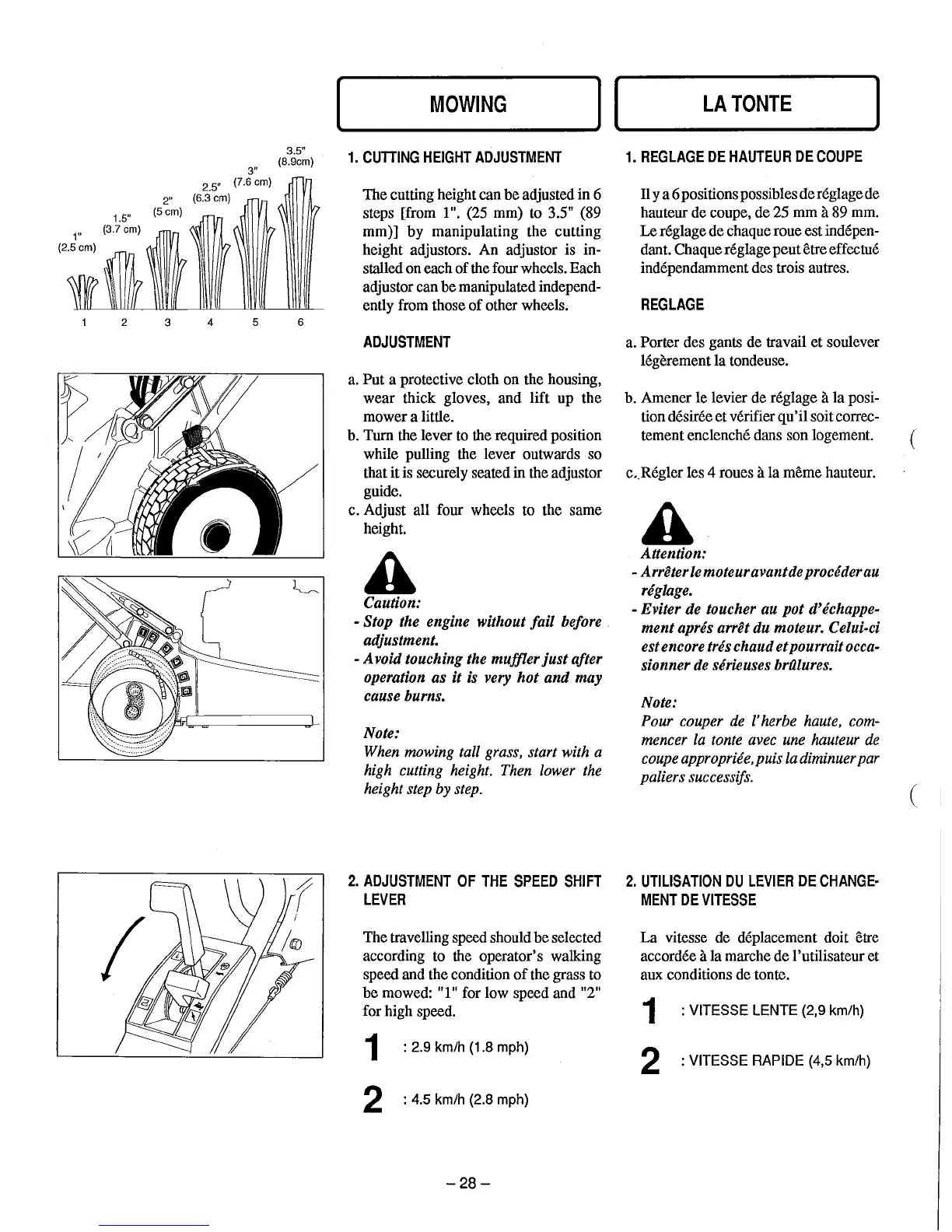 hauteur de coupe, de 25 mm a 89 mm.
