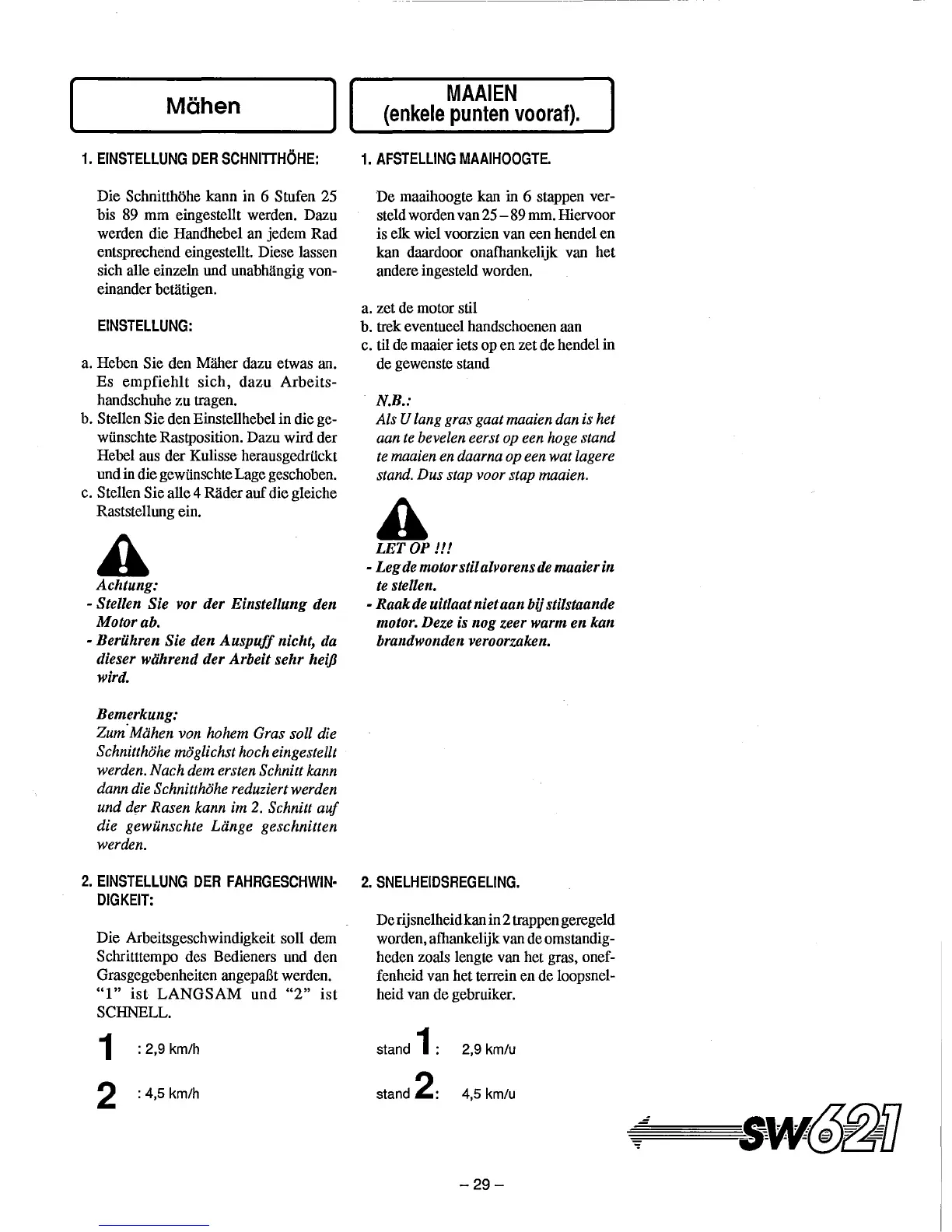 de maaier iets op en zet de hendel in