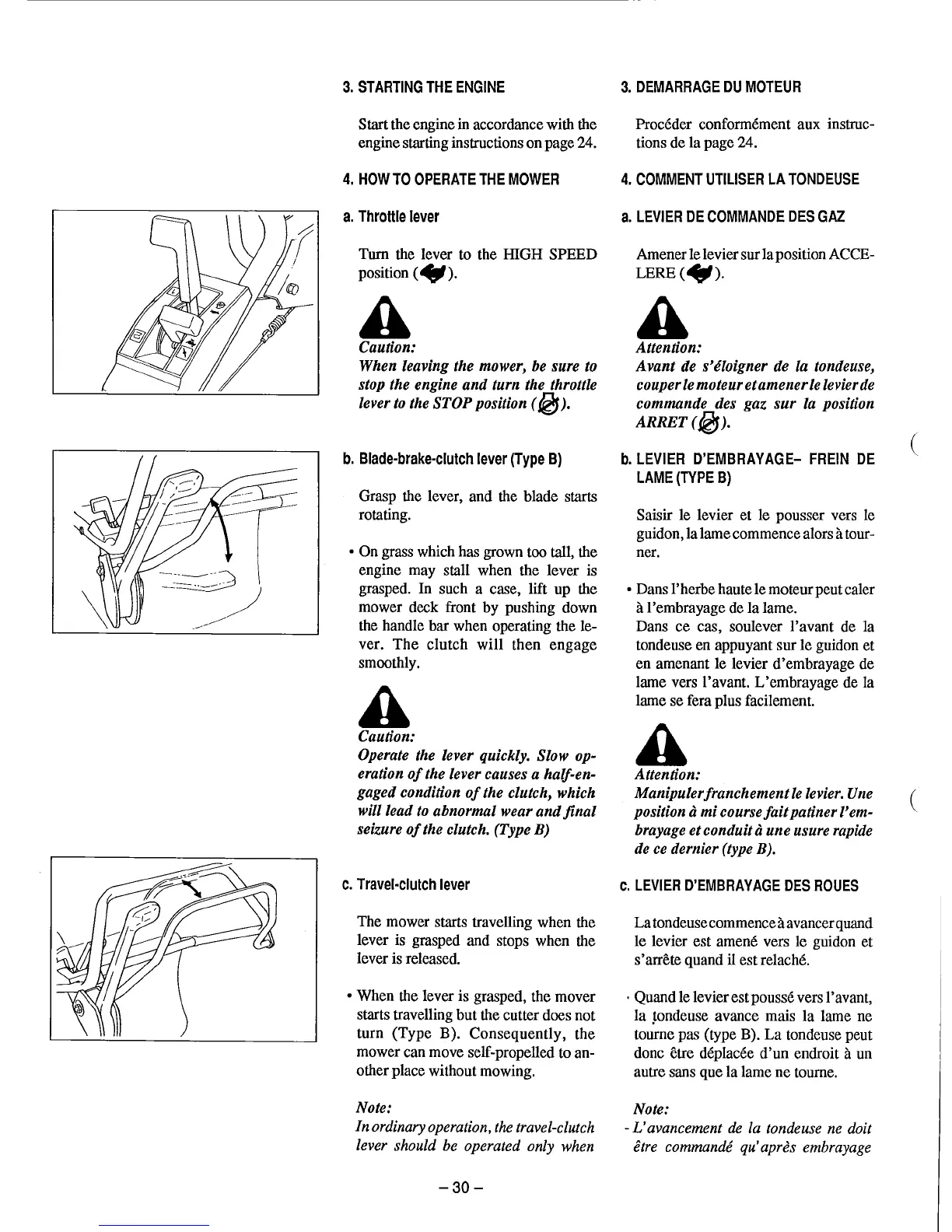 tondeuse en appuyant sur le guidon et