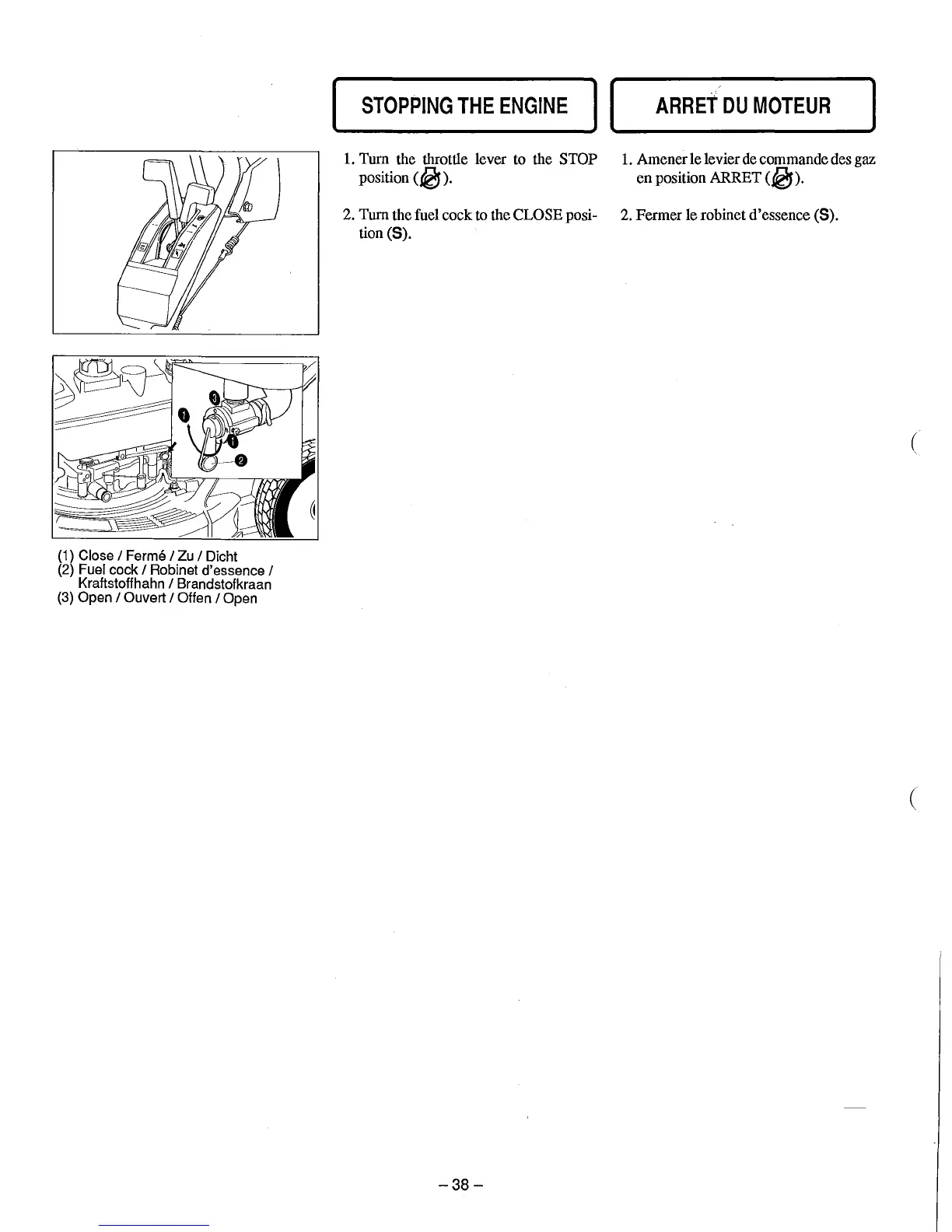 1.Turn the throttle lever to the STOP