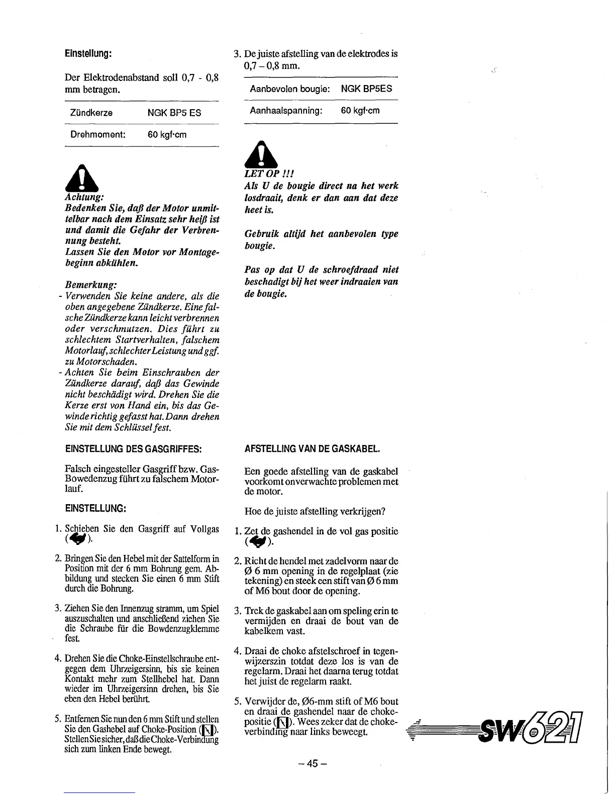 1. Zet de gashendel in de vol gas positie