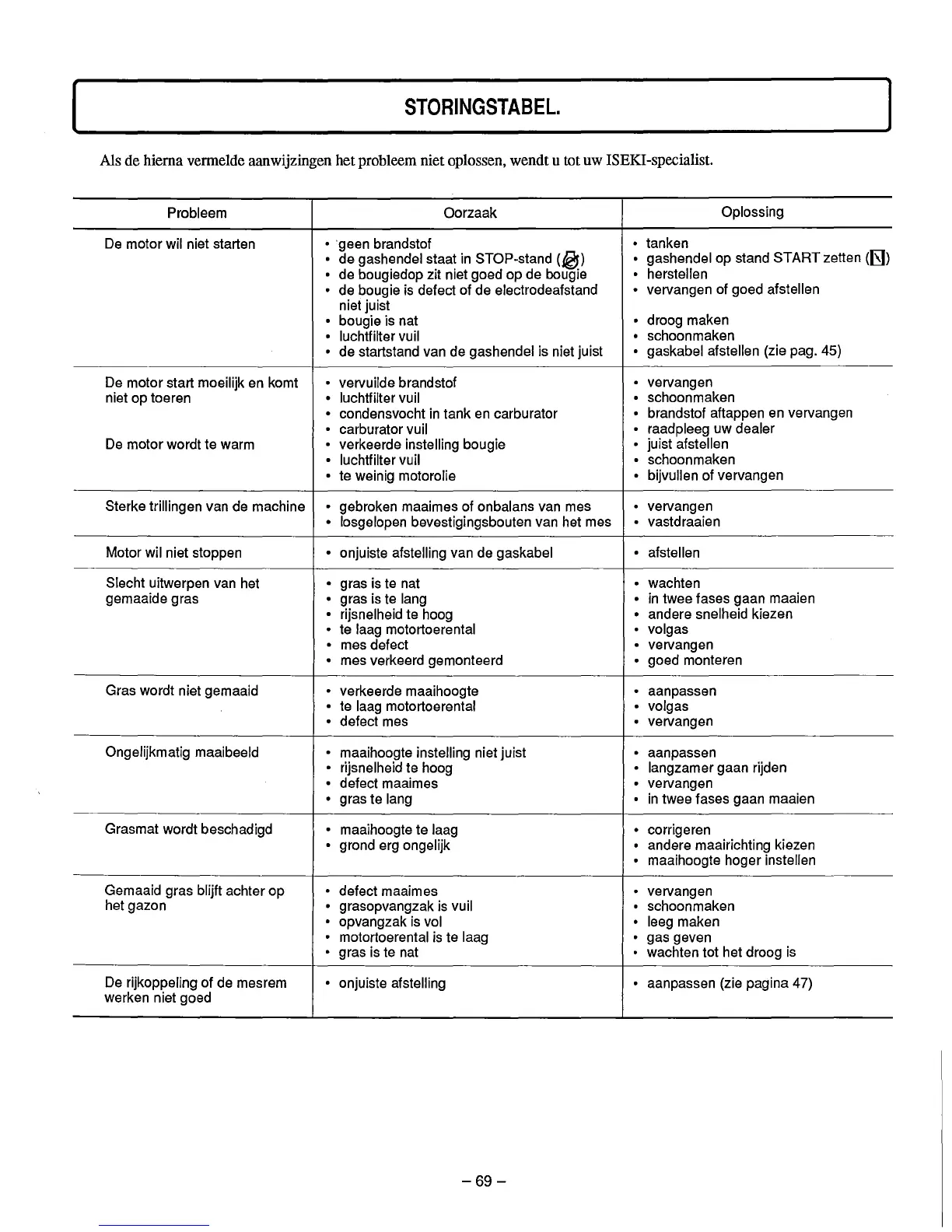 vermelde aanwijzingen het probleem niet oplossen, wendt u tot uw ISEKI-specialist.