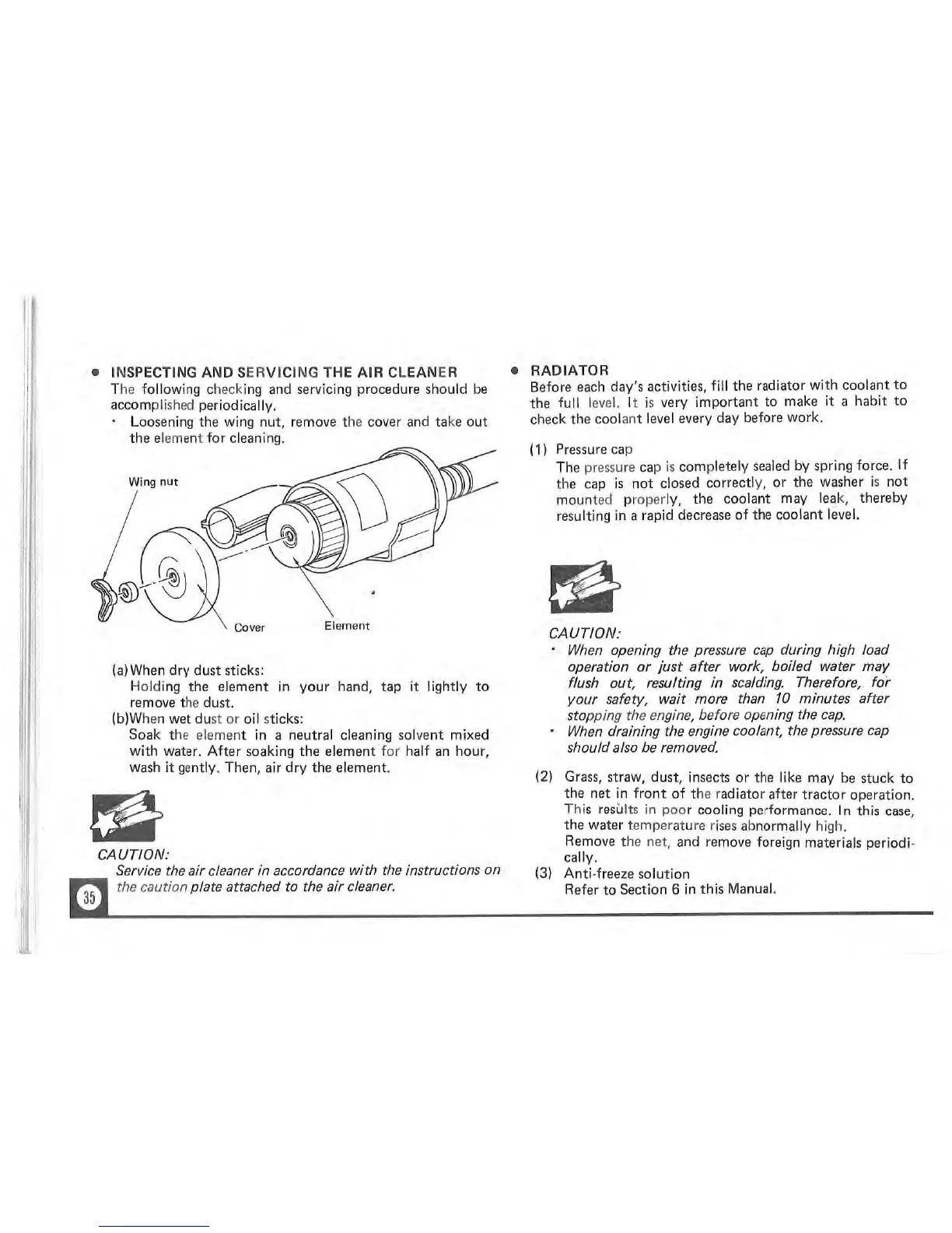 Iseki TX1000F - Inspecting and Servicing the Air Cleaner; Radiator