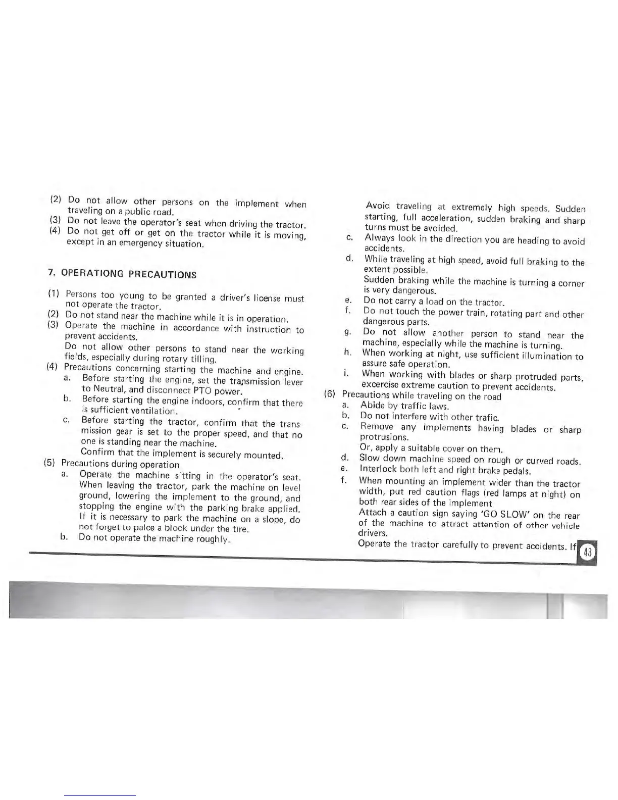Iseki TX1000F - Operation Precautions