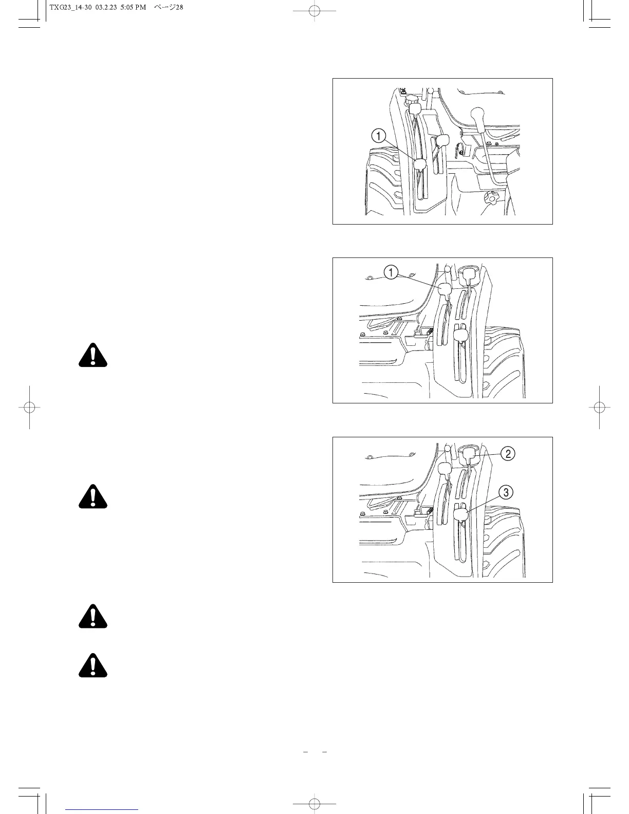 FIG. 23: PTO (Power Take-Off) clutch lever, 1, engages