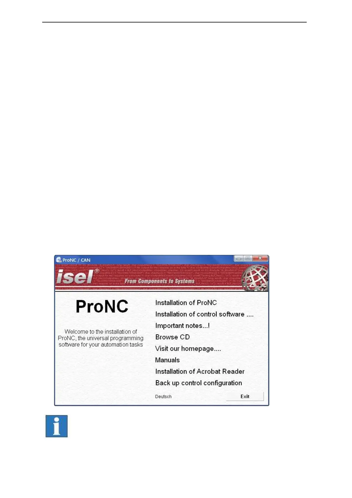 1. Connect ProNC/Remote install medium (delivered CD or USB stick) with the