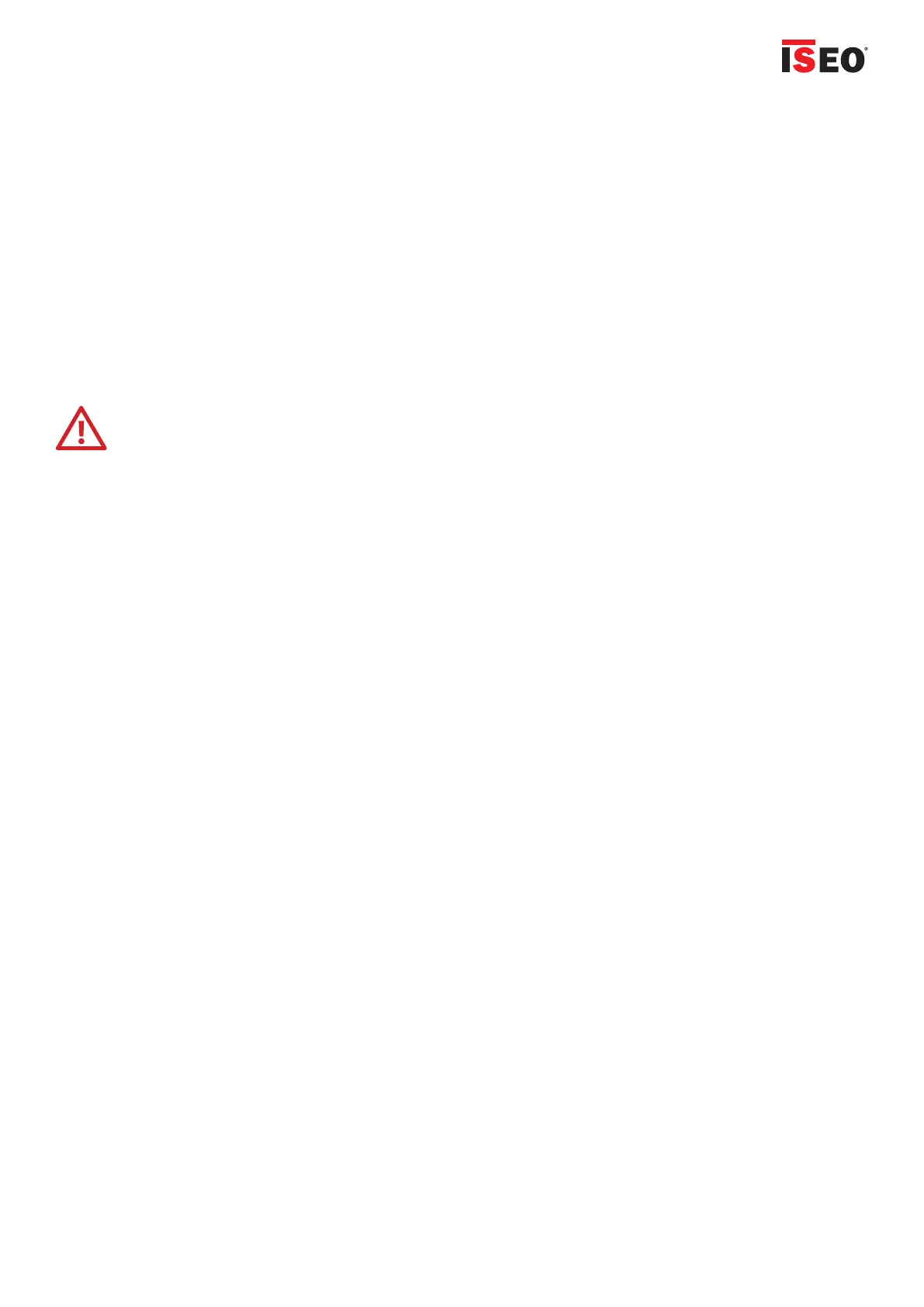 • The installation of the device requires the intervention of qualified staff, adequately trained by ISEO.