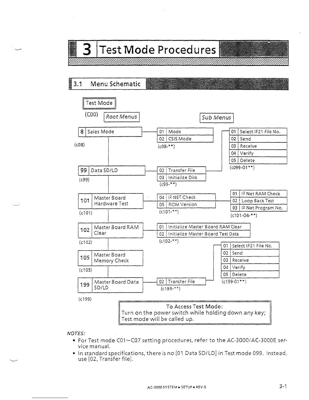 For Test mode C01-C07 setting procedures, refer to the AC-3000lAC-3000E ser-