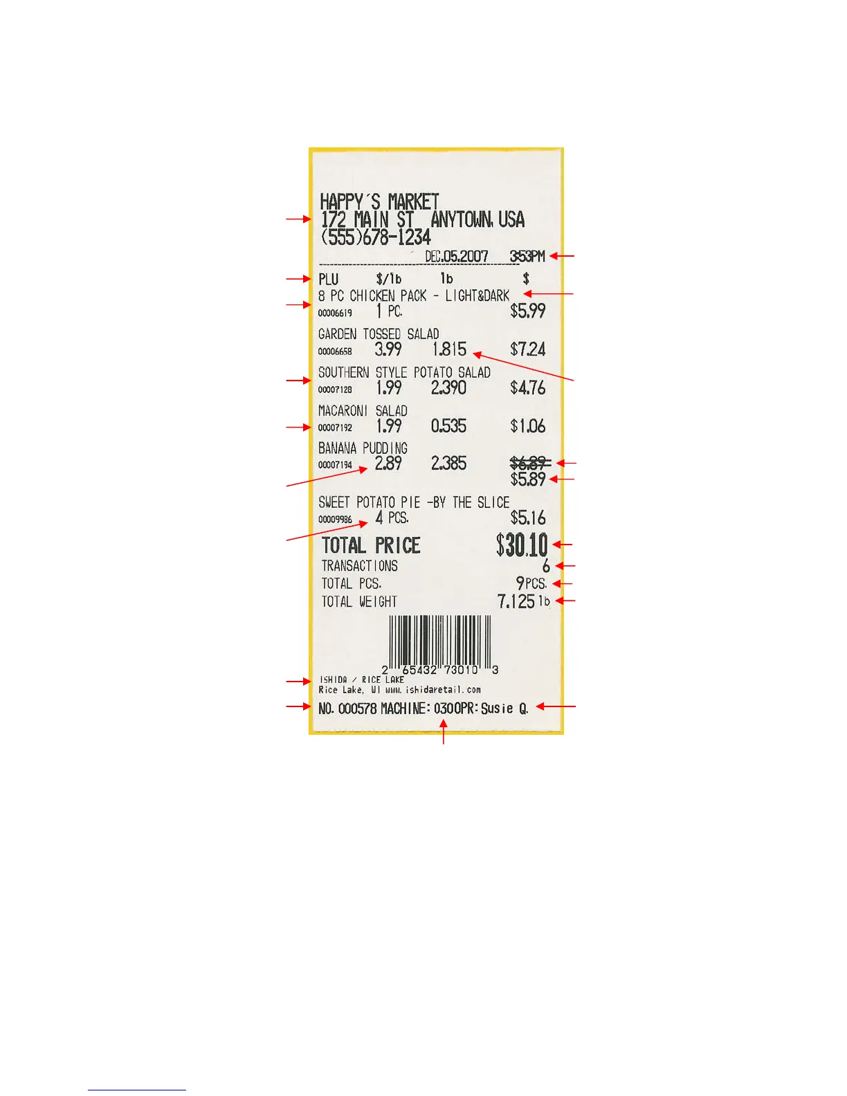 ISHIDA AC-4000 - Receipt Printout; Receipt Elements Explanation
