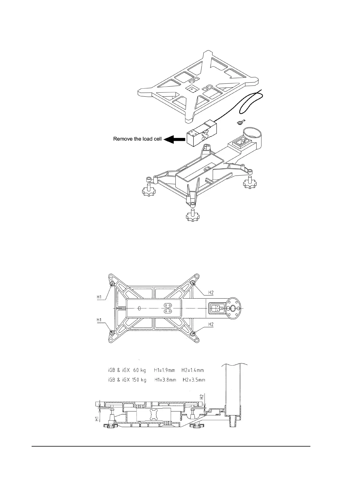 Remove the load cell unit. Then, install a new load cell unit and reverse the above
