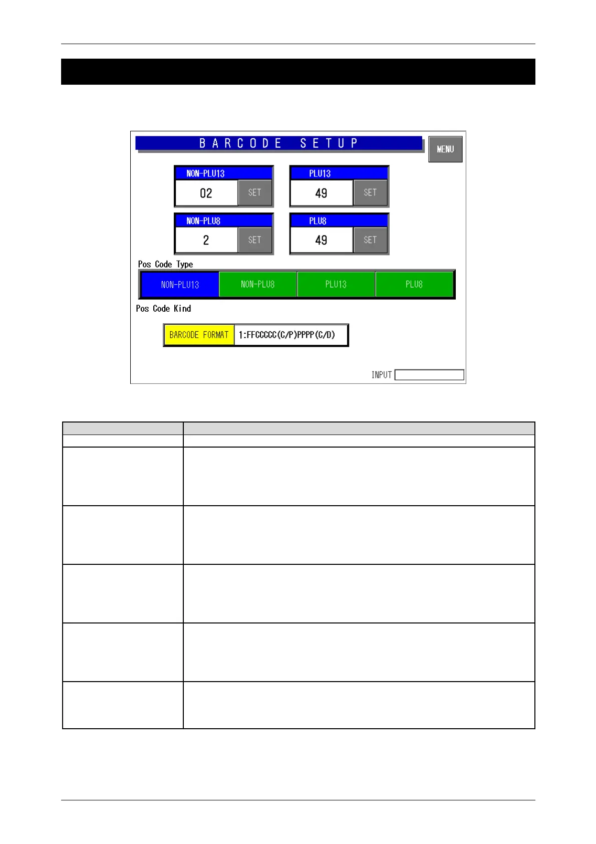 POS Code Type Select the code type to be referred to when the code type is set as “Refer” in