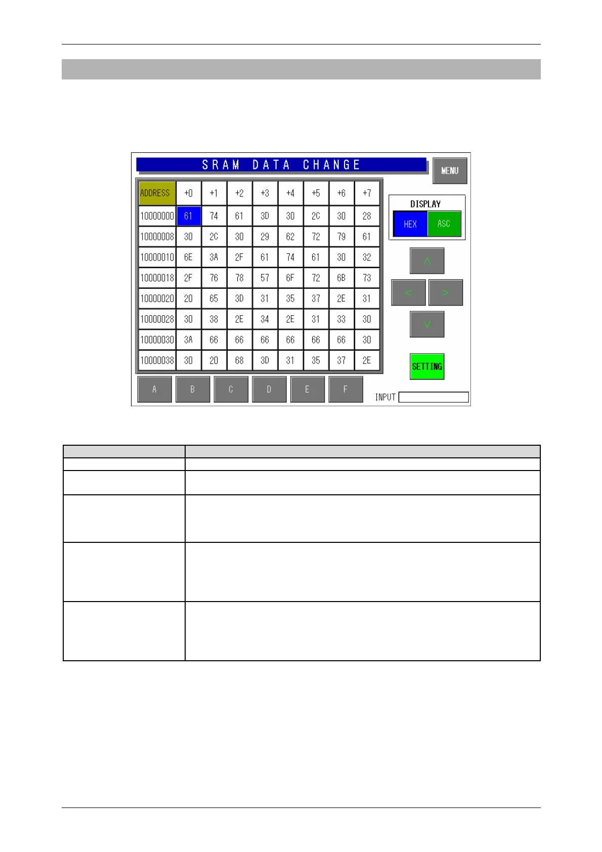 SRAM Data Button Press any button (address position) to change its color to blue and enable