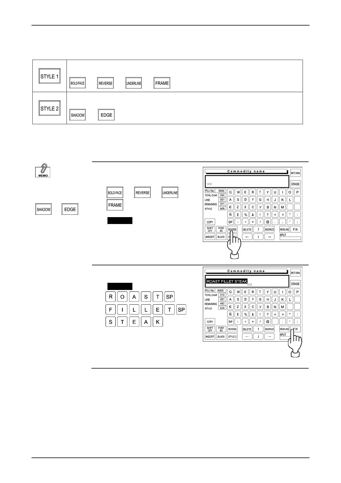 [STYLE 1] and [STYLE 2] keys are used to emphasize the characters.