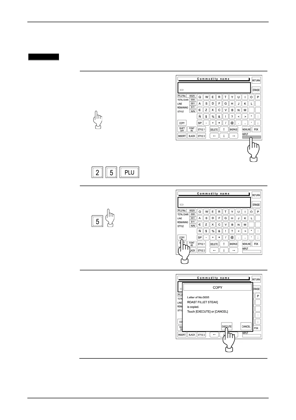 Copy the text “Roast Fillet Steak” of the PLU No.5 to the PLU No.25.