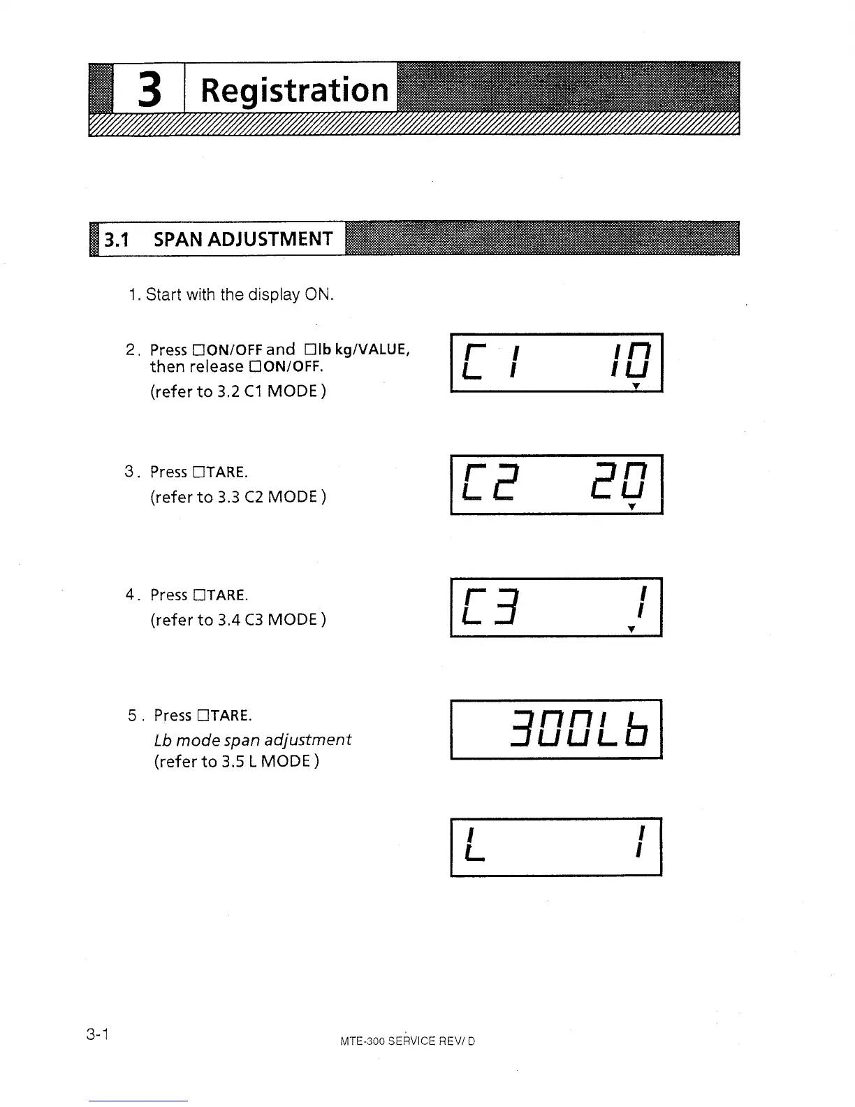 ISHIDA MTE-300 - Registration; Span Adjustment