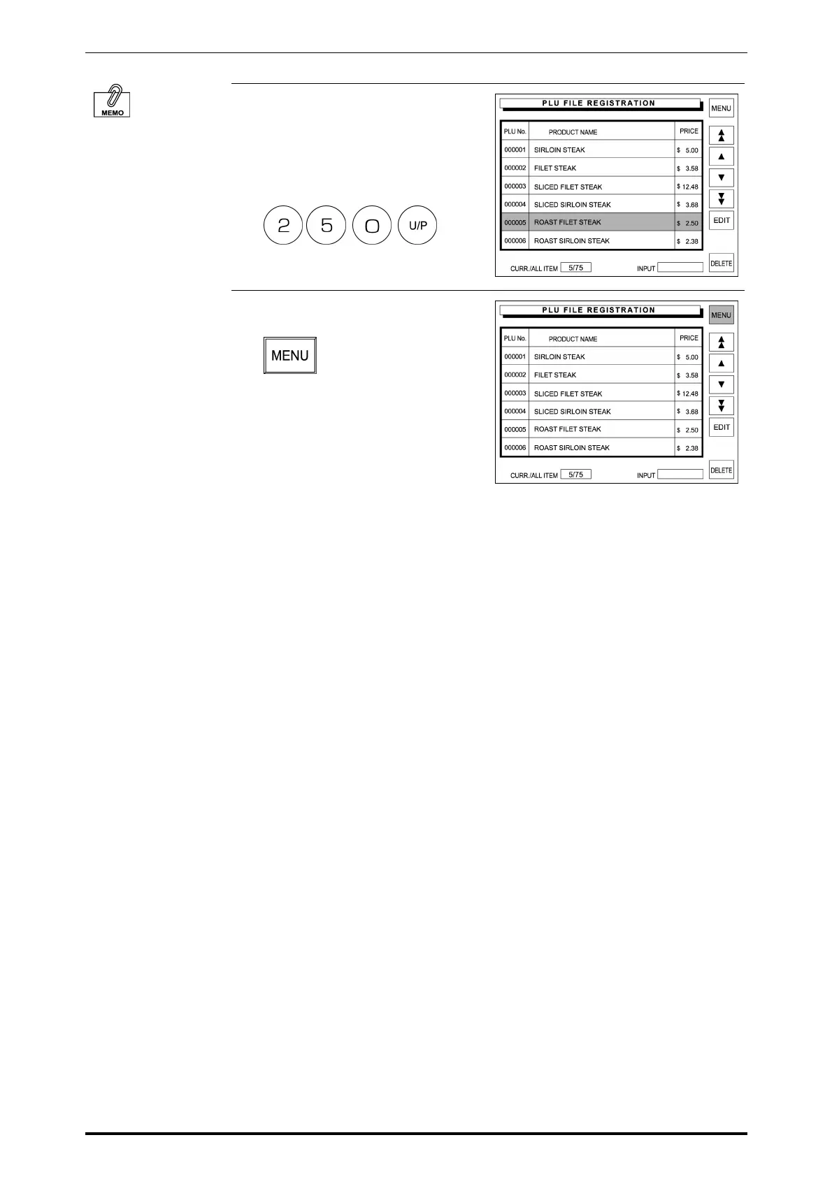 and press the [U/P] (Unit Price) key